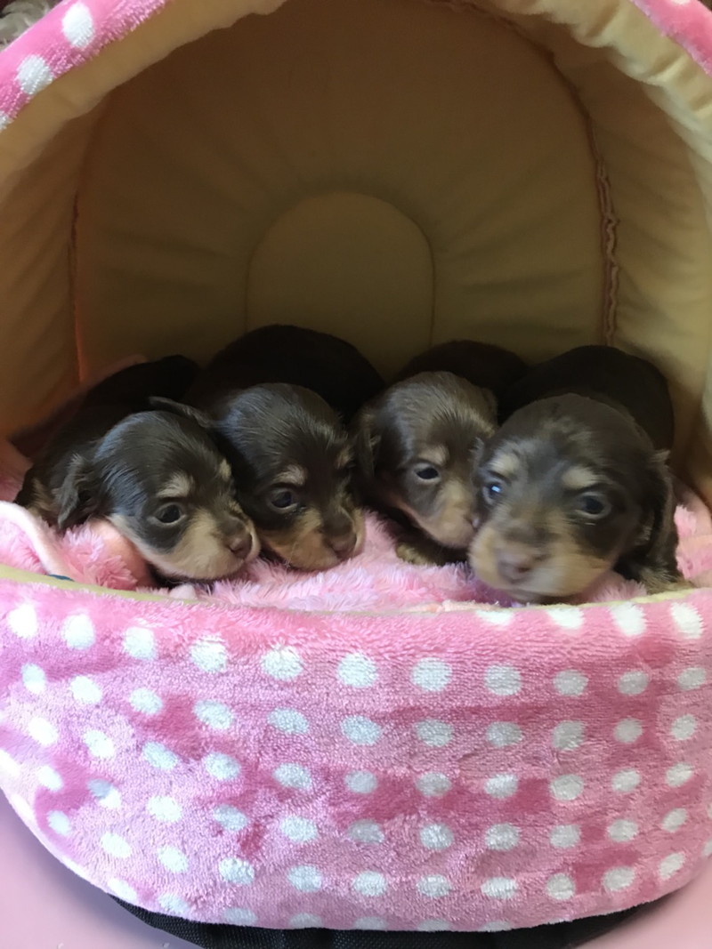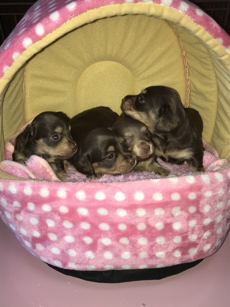 10月産まれのミニチュアダックスフントの赤ちゃん達 (女の子3頭、男の子1頭)も順調に育ってます。